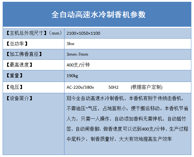 全自動高速水冷制香機